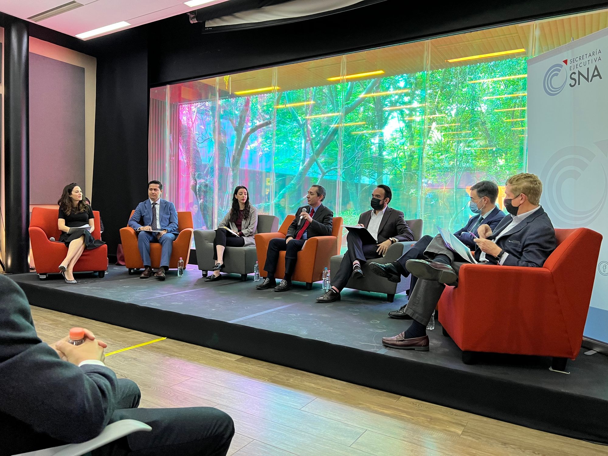 El evento contó con un panel conformado por: Fernanda Avendaño, del Instituto Mexicano para la Competitividad, A.C. (IMCO), Francisco Álvarez, del Comité de Participación Ciudadana (CPC); Gerardo Laveaga, de la Secretaría de la Función Pública (SFP); Fernando Araiz, del Instituto Nacional de Transparencia, Acceso a la Información y Protección de Datos Personales (INAI), Carlos Romero Hicks, de la Cámara de Diputados y Ricardo Salgado Perrilliat, de la SESNA. Además, el panel fue moderado por Alexandra Zapata, reconocida activista e investigadora.